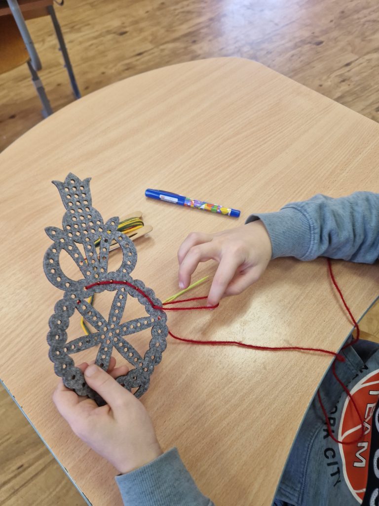 Užduotis nebuvo paprasta, tačiau labai prasminga. Pasitelkę savo kruopštumą ir kantrybę, mokiniai siuvinėjo verpstes iš veltinio. Jie naudojo trispalvius siūlus ir skirtingas siuvinėjimo technikas, kad sukurtų unikalius ir gražius darbus, atspindinčius meilę savo šaliai. Nors procesas nebuvo lengvas, ir neretai teko ardyti siuvinius bei bandyti iš naujo, rezultatas pranoko visus lūkesčius.