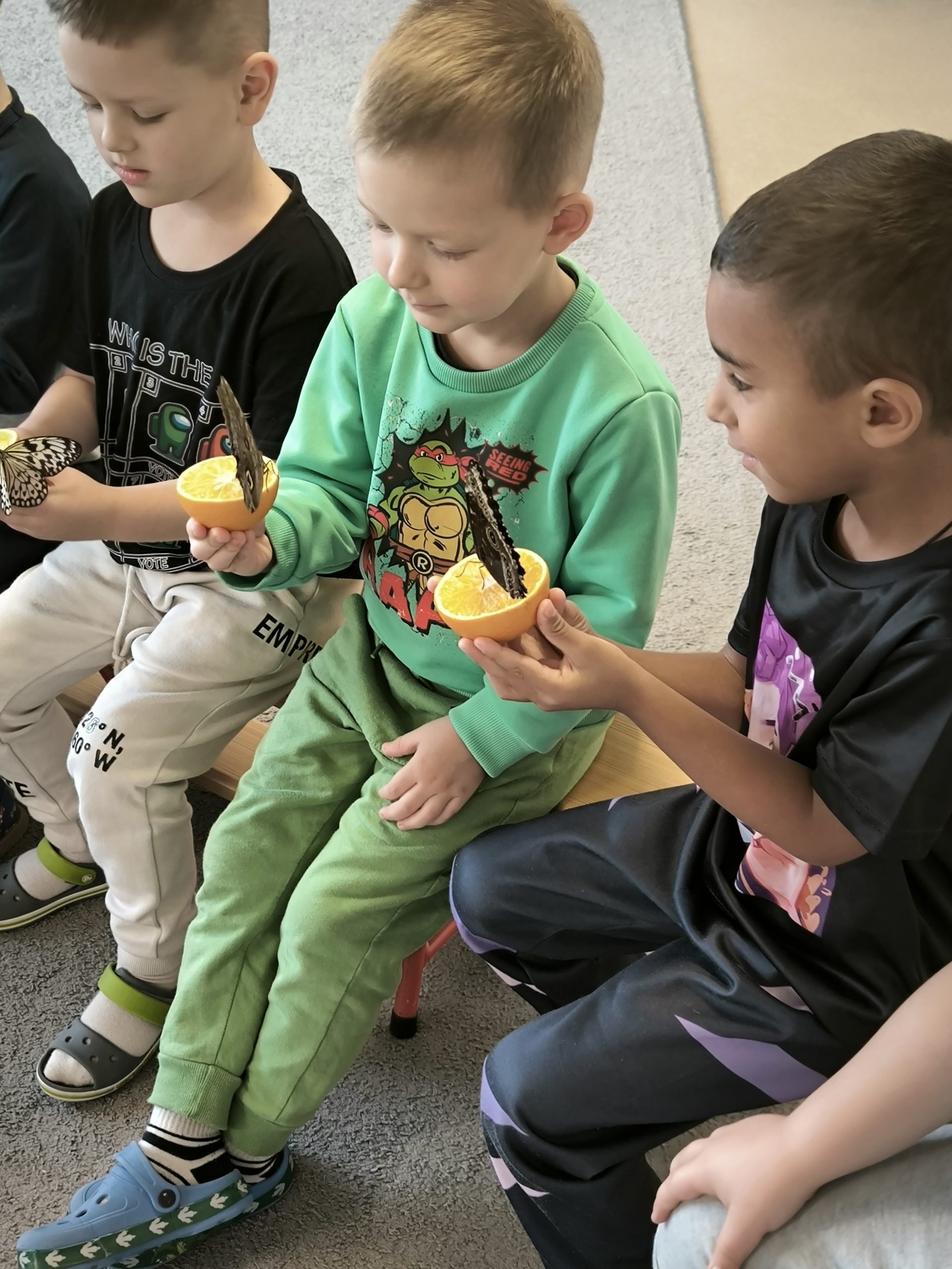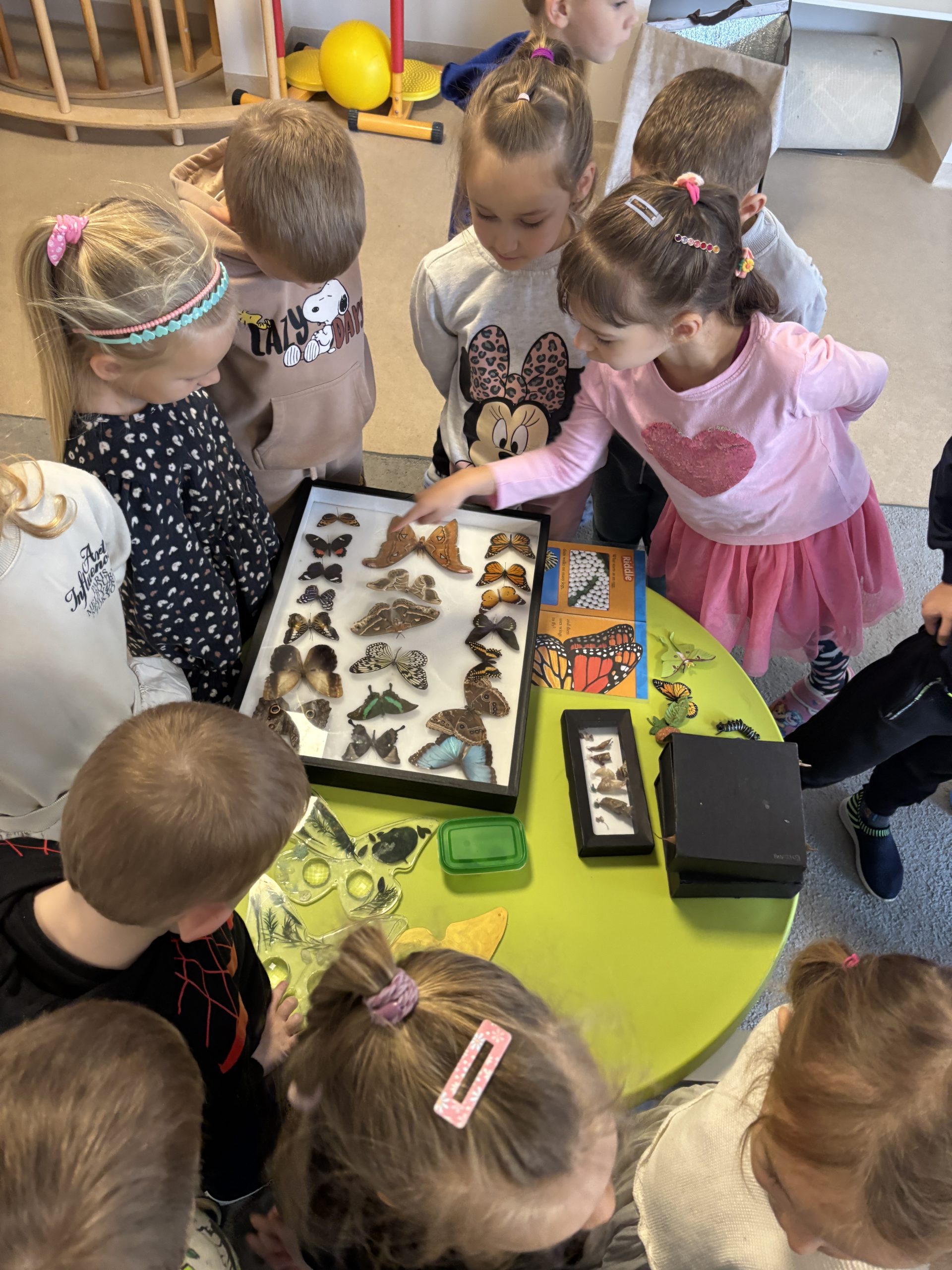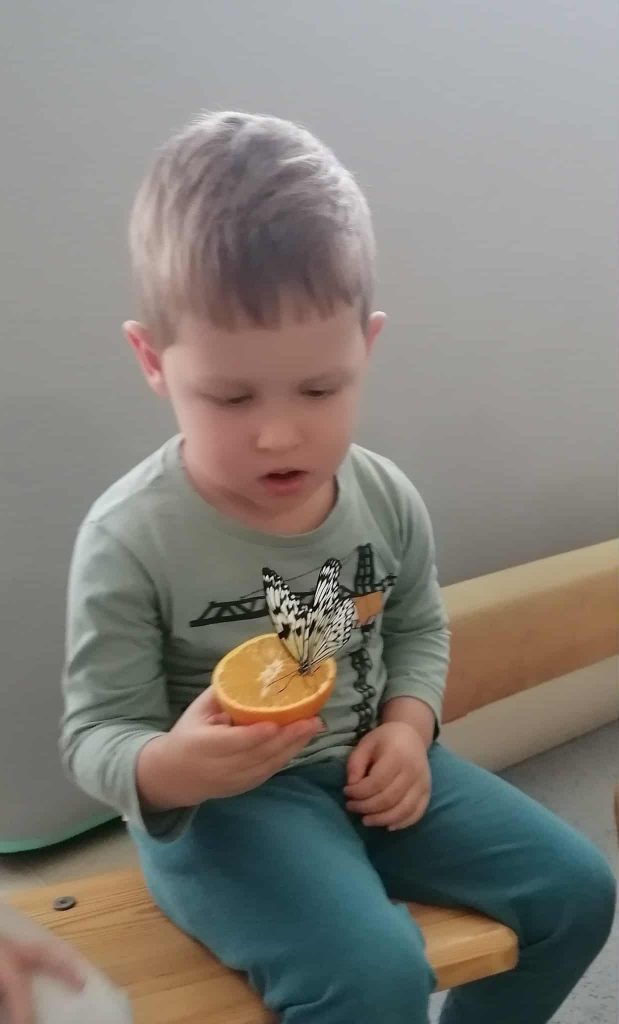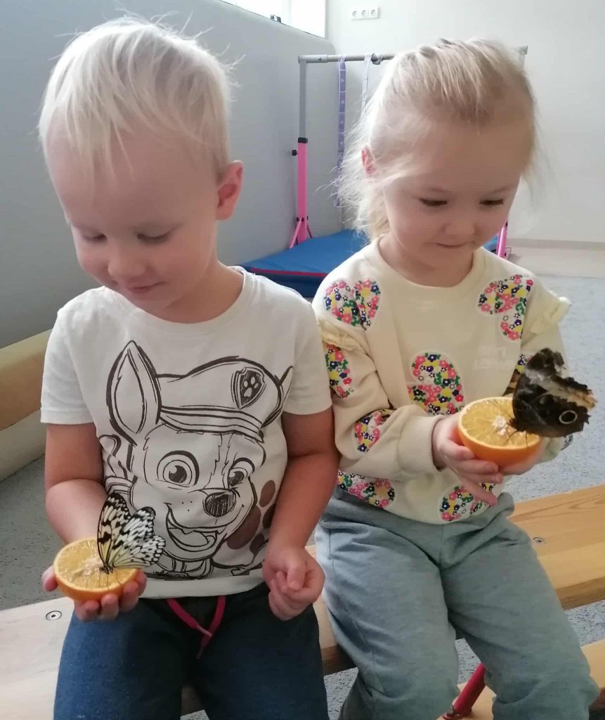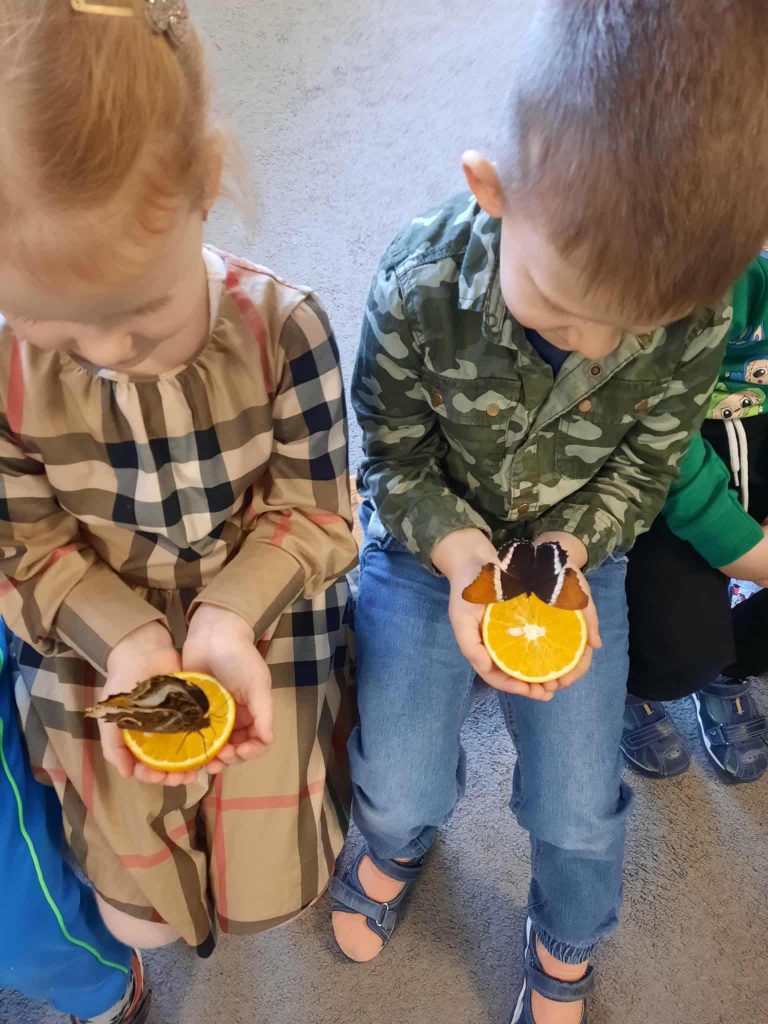 Mažieji tyrinėtojai taip pat išbandė žiūroną ir sužinojo, kaip pasaulį mato drugeliai. Didžiausią susidomėjimą sukėlė galimybė rankose laikyti apelsiną, ant kurio nutūpęs drugelis maitinosi išskleidęs čiulptuvėlį. Ne vienas vaikas net sušnibždėjo savo norą gyvam tropiniam drugeliui – sakoma, kad jie tikrai išsipildo!