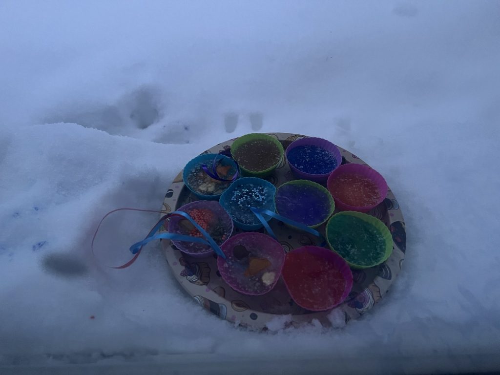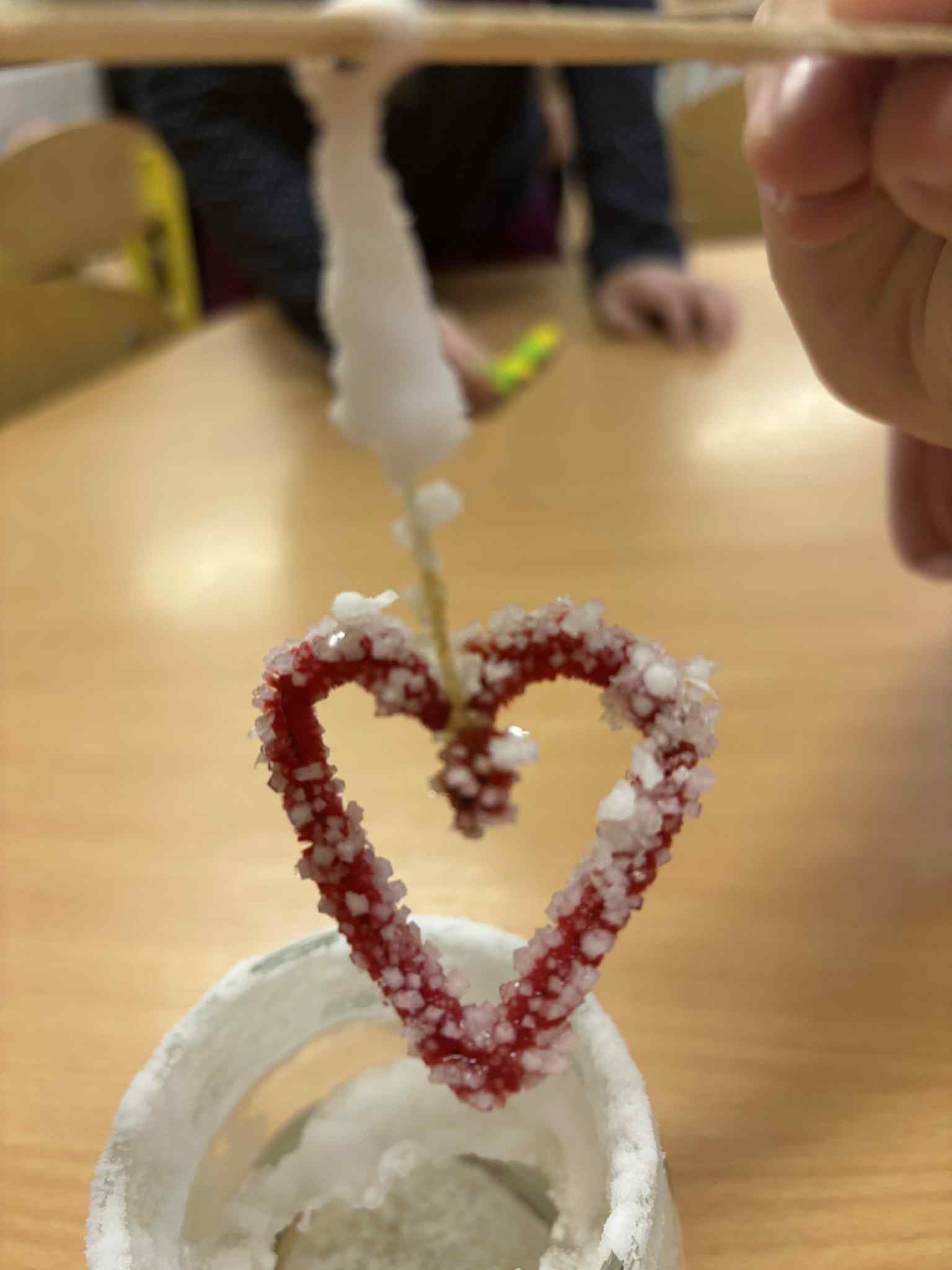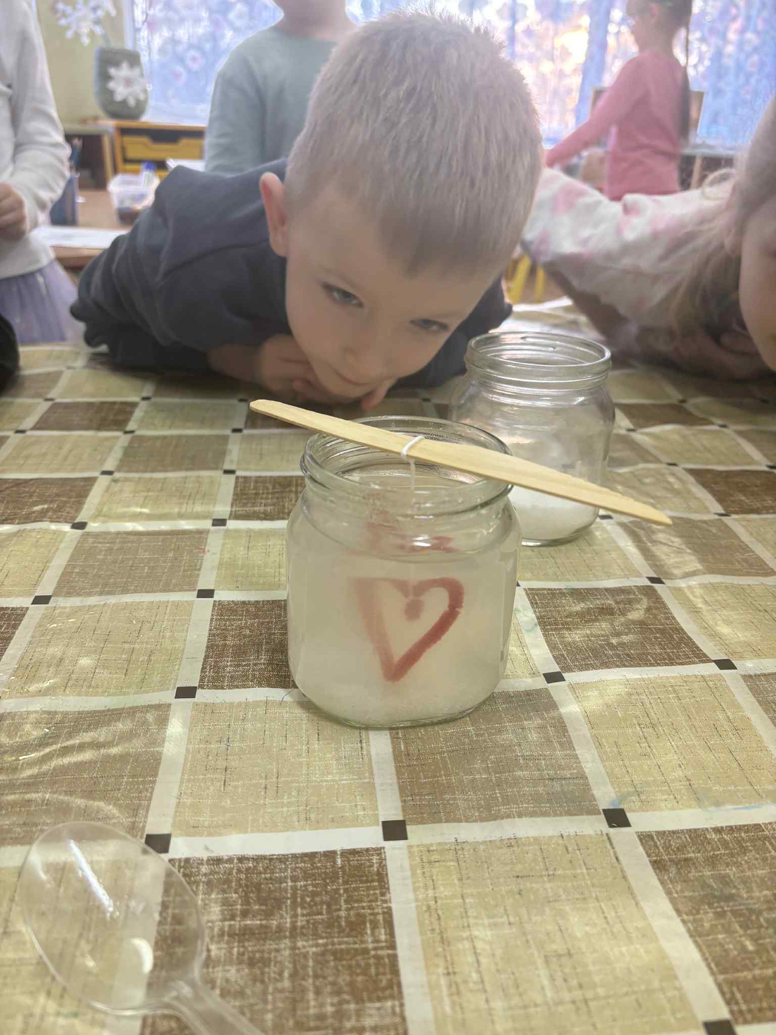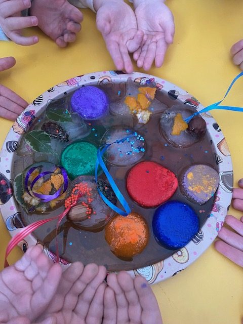 Tyrinėdami vandenį ir ledą , stebėjome, kaip keičiasi jų būsenos, supratome, kas nutinka šilumai susitikus su šalčiu. Spalvų maišymas virto tikru stebuklu – vaikai patys atrado, kaip iš pagrindinių spalvų gimsta naujos, netikėti atspalviai. Didelį susižavėjimą sukėlė ir kristalų auginimas – kantriai, žingsnio po žingsnio stebėjome, kaip iš mažų dalelių formuojasi spindintys kūriniai.