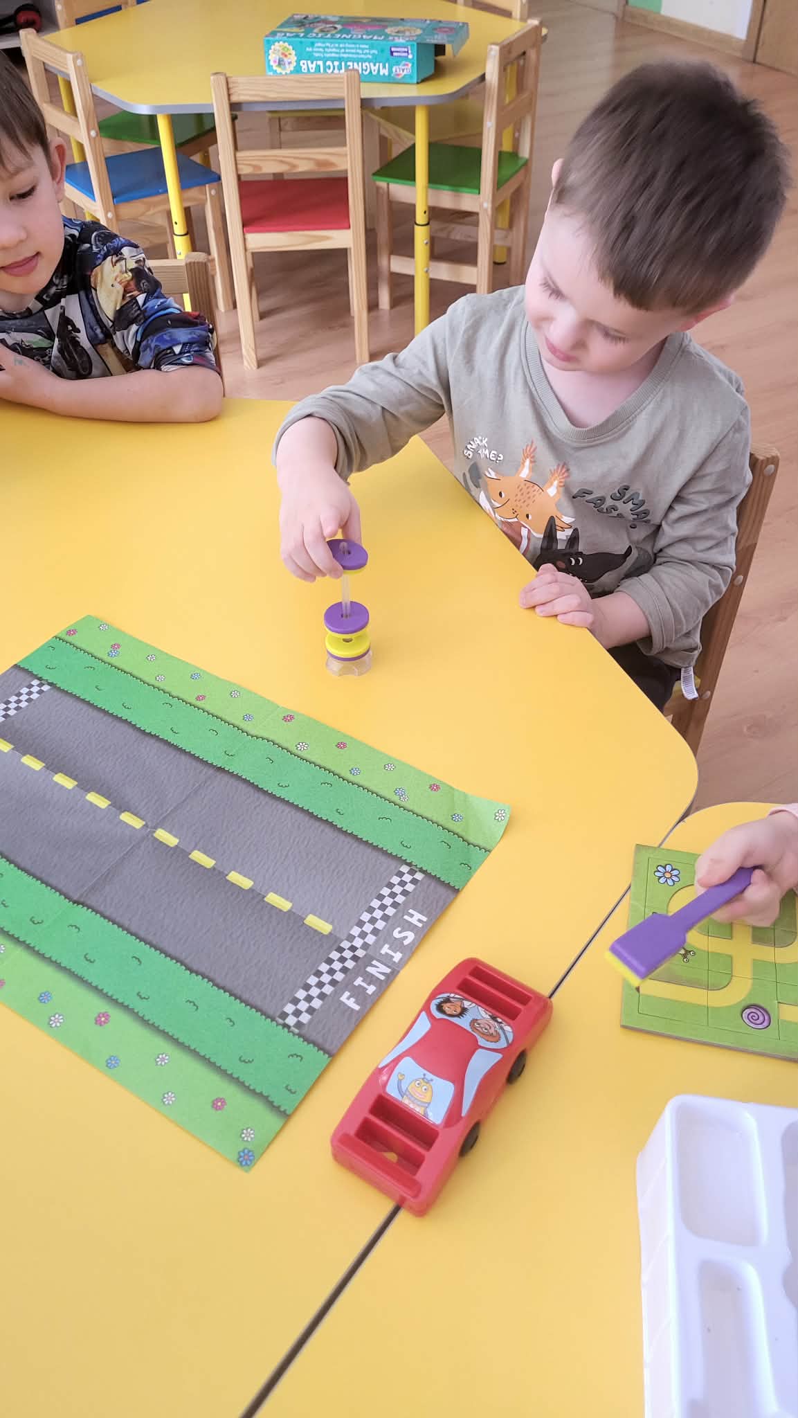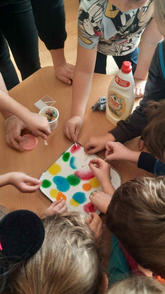 Ne mažiau įdomių buvo pažintis su magnetais ir magnetiniu lauku . Vaikai smalsiai tikrino, kuriuos daiktus magnetas traukia, o kurie lieka abejingi, stebėjo jo „nematomą galią“ ir džiaugėsi netikėtais rezultatais. Įdomūs eksperimentai buvo su pienu, su soda, su padidinimo lūpą.