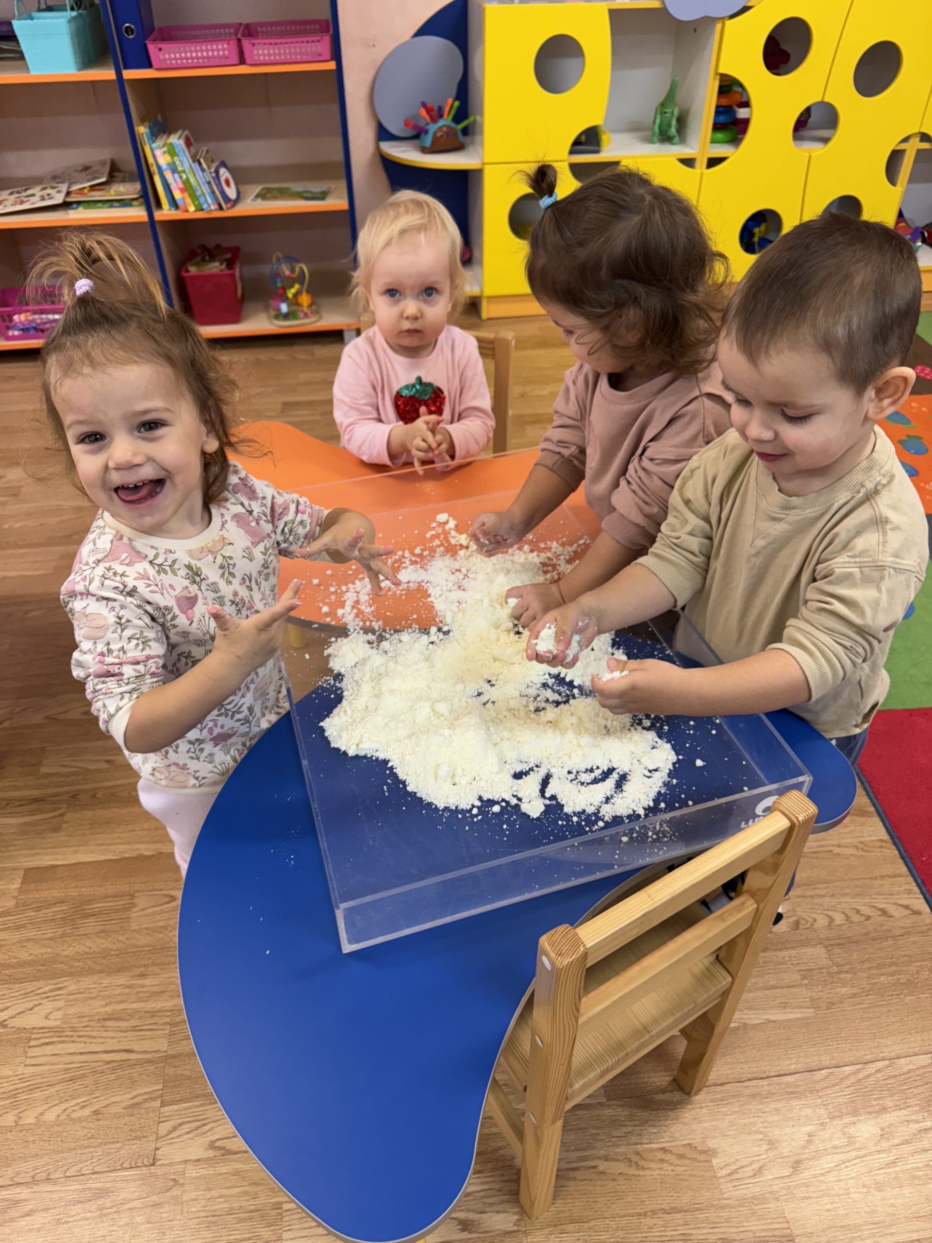Mūsų grupėje ,,Krasnoliudki” žaidžiame linksmus žaidimus su sniego kamuoliais. Dirbtinis sniegas iš krakmolo – tai smagi ir naudinga veikla, kuri lavina vaikų kūrybiškumą, pojūčius bei smulkiąją motoriką. Ši veikla saugi, paprasta ir labai įtraukianti – ji leidžia patirti žiemos džiaugsmus bet kuriuo metų laiku.