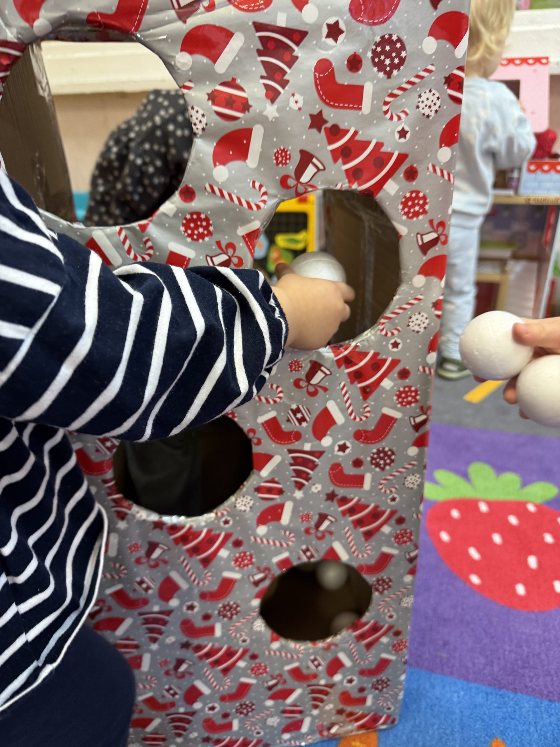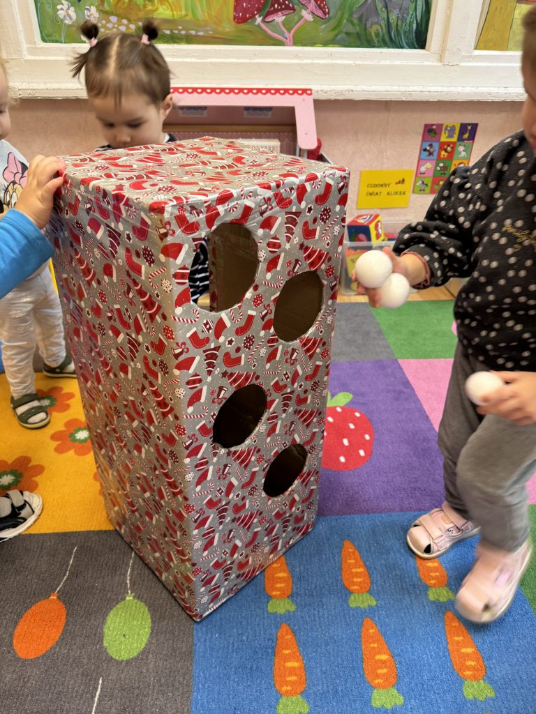 Dar vienas puikus žaidimas su vilnos kamuoliais, imituojančiais sniego gniūžtes. Suteikia vaikams daug džiaugsmo ir ugdymo naudos.