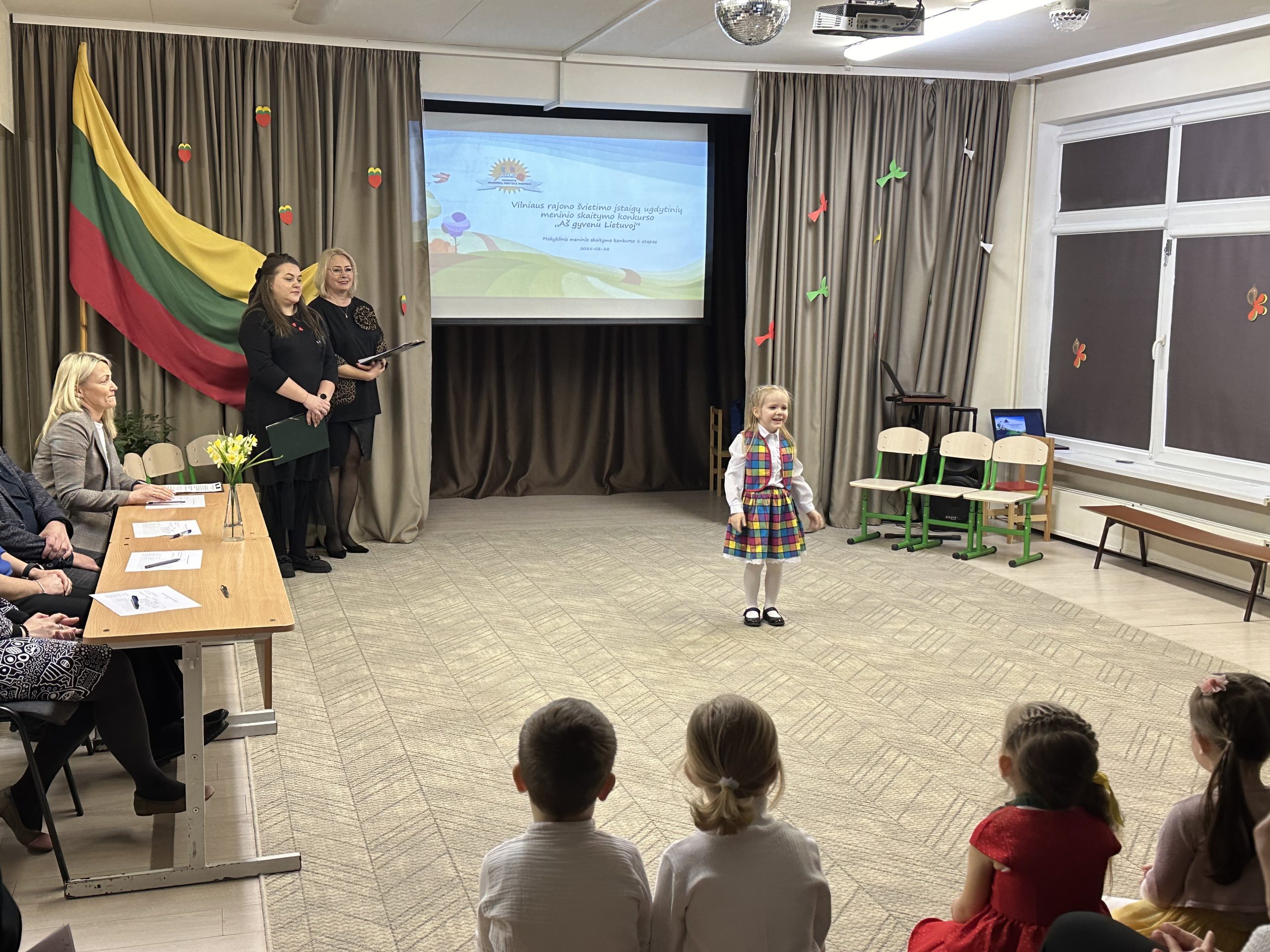 2025 m. vasario 14 d. mūsų mokykloje-darželyje įvyko Vilniaus rajono savivaldybės švietimo įstaigų, teikiančių ikimokyklinį ir priešmokyklinį ugdymą vaikų meninio skaitymo konkurso „Aš augu Lietuvoj“ I etapas. Dalyviai iš ikimokyklinio ir priešmokyklinio ugdymo grupių rinkosi pasidalinti gražiais poezijos rimais. Mažieji skaitovai deklamavo mylimų poetų eilėraščius, kuriais džiugino klausytojų ausis ir širdis.