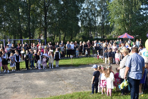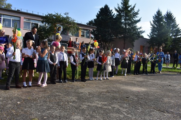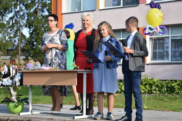Išsirikiavę mokyklos-darželio kieme, garsiais plojimais pasitikome pirmokėlius, kuriuos į šventę lydėjo vyriausieji mokyklos mokiniai – ketvirtokai. Mokslo metų pradžios šventė kaip visuomet prasidėjo giedant Tautinei giesmei, po kurios tęsėsi gražūs sveikinimai, linkėjimai, nuotaikinga meninė programa.