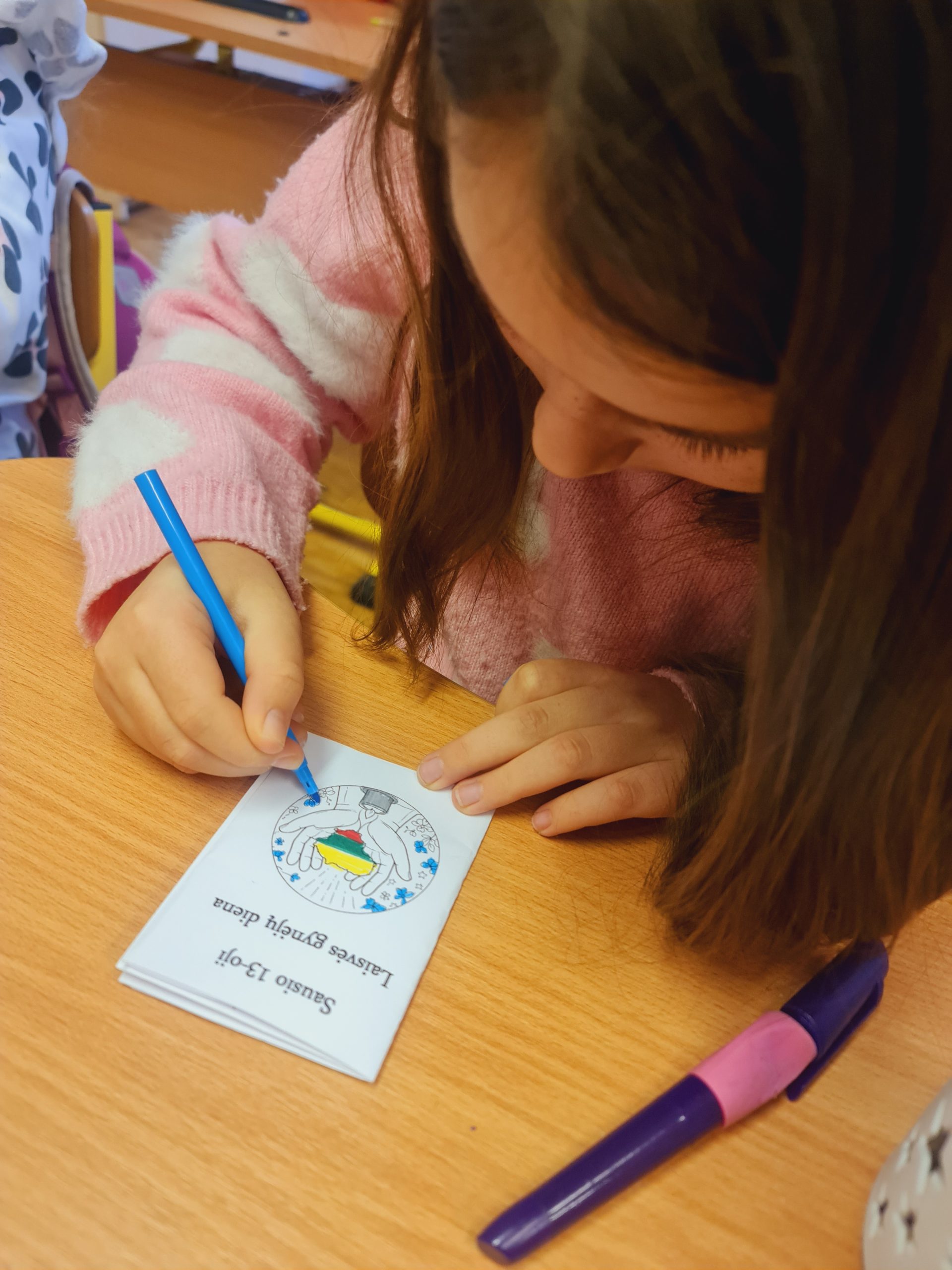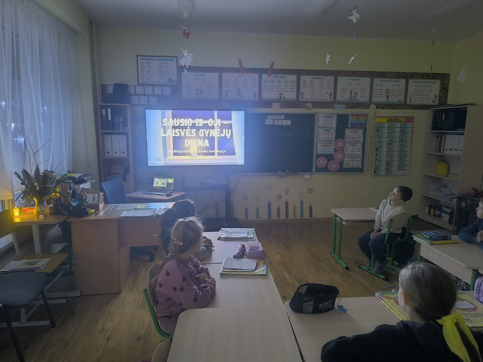Minėjimo metu žiūrėjome trumpą filmą, ruošėme atminimo knygutes ir aptarėme svarbiausius Sausio 13-osios įvykius bei jų reikšmę. Buvo nuostabu matyti, kaip mokiniai noriai išmoko eilėraščius apie laisvę ir juos deklamuoja. Kiekvienas vaikas turėjo galimybę išreikšti, ką jam asmeniškai reiškia laisvė – tai buvo jautri, prasminga ir labai graži akimirka.