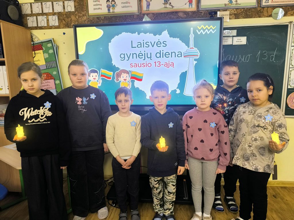 Šiais metais minėjome ypatingą progą – 35-ąsias Laisvės gynėjų dienos metines. Dalyvavome pilietinėje akcijoje „Pergalės šviesa“, kurios tikslas – ugdyti mokinių patriotiškumą, pagarbą mūsų šalies istorijai ir žmonėms, kurie gynė mūsų laisvę.