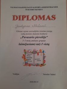 Konkurs recytatorski ,,Pavasario pėvelėje“ 2026.04.21 14 kwietnia 2026 roku w żłobku-przedszkolu w Niemenczynie odbył się konkurs recytatorskiprzedszkolaków z rejonu wileńskiego w dwóch kategoriach wiekowych: dzieci…