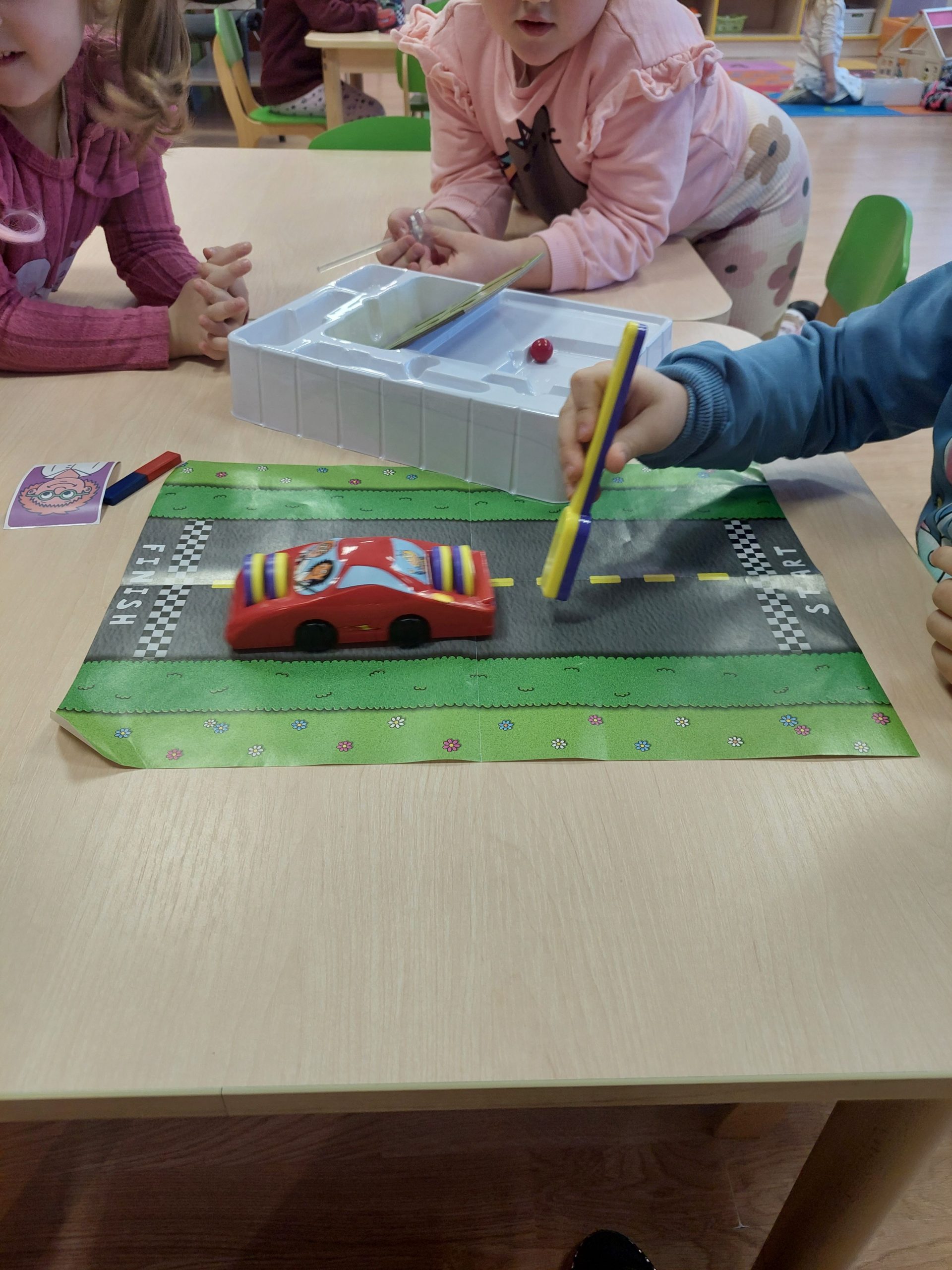 Dodatkowo poznawaliśmy pole magnetyczne i magnesy. Dzieci sprawdzały, które przedmioty przyciąga magnes, a które nie, obserwowały jego działanie i świetnie się przy tym bawiły. Był to czas pełen radości, ciekawości i małych naukowych odkryć.