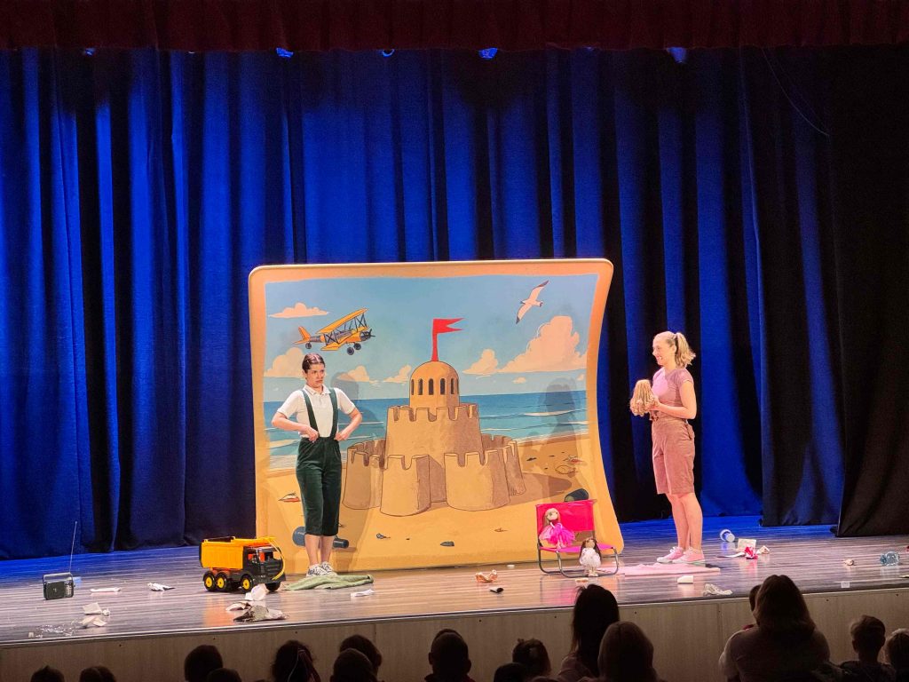 Uczniowie polskich klas naszej szkoły odwiedzili Centrum Kultury w Rudominie, gdzie obejrzeli interaktywny spektakl muzyczny „Trzy księżniczki na ziarnku piasku”, przygotowany przez teatr z Gdyni (Fundacja Pomysłodalnia).