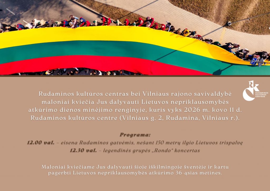 Rudaminos kultūros centras kviečia kartu švęsti Lietuvos nepriklausomybės atkūrimo dieną!
