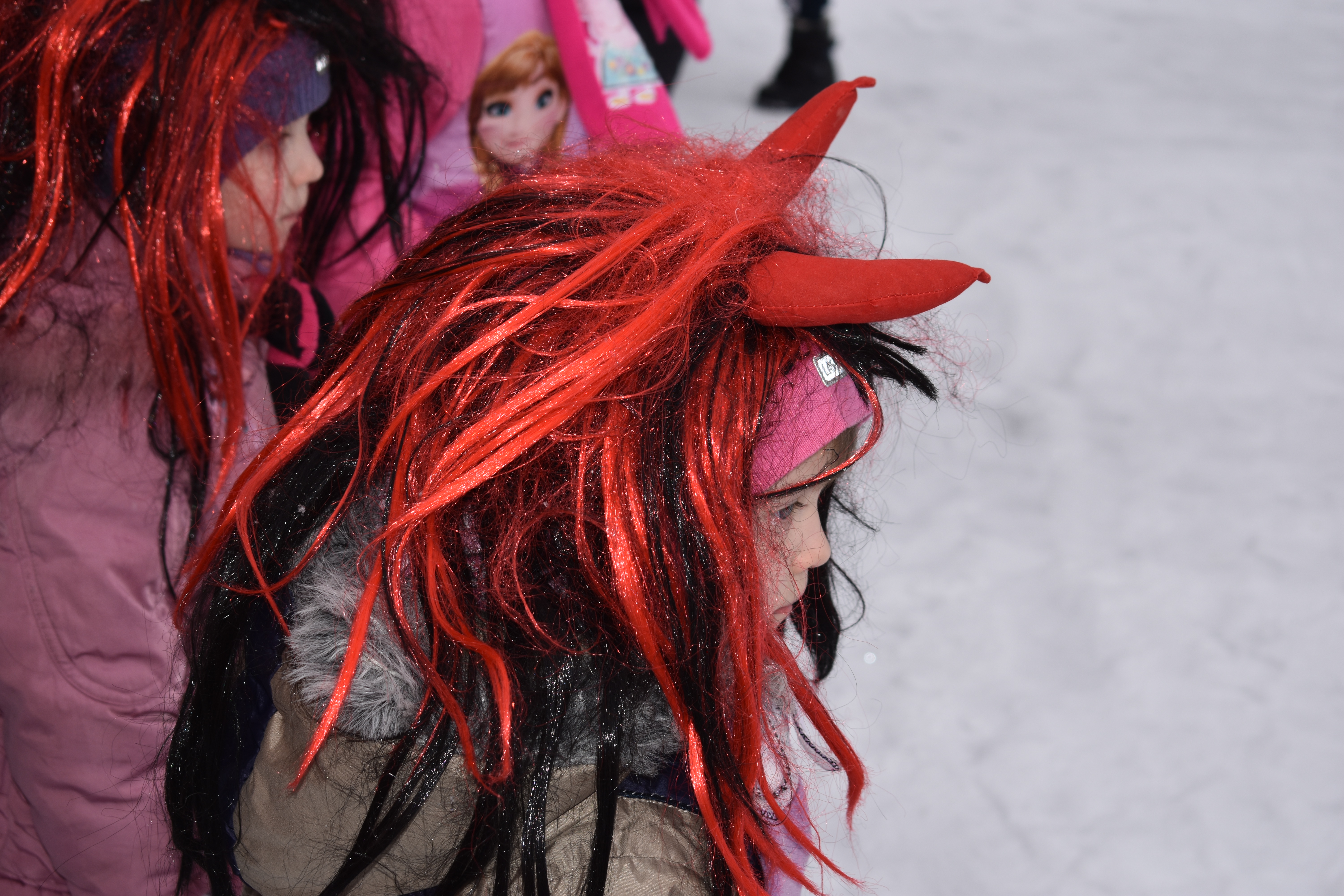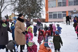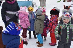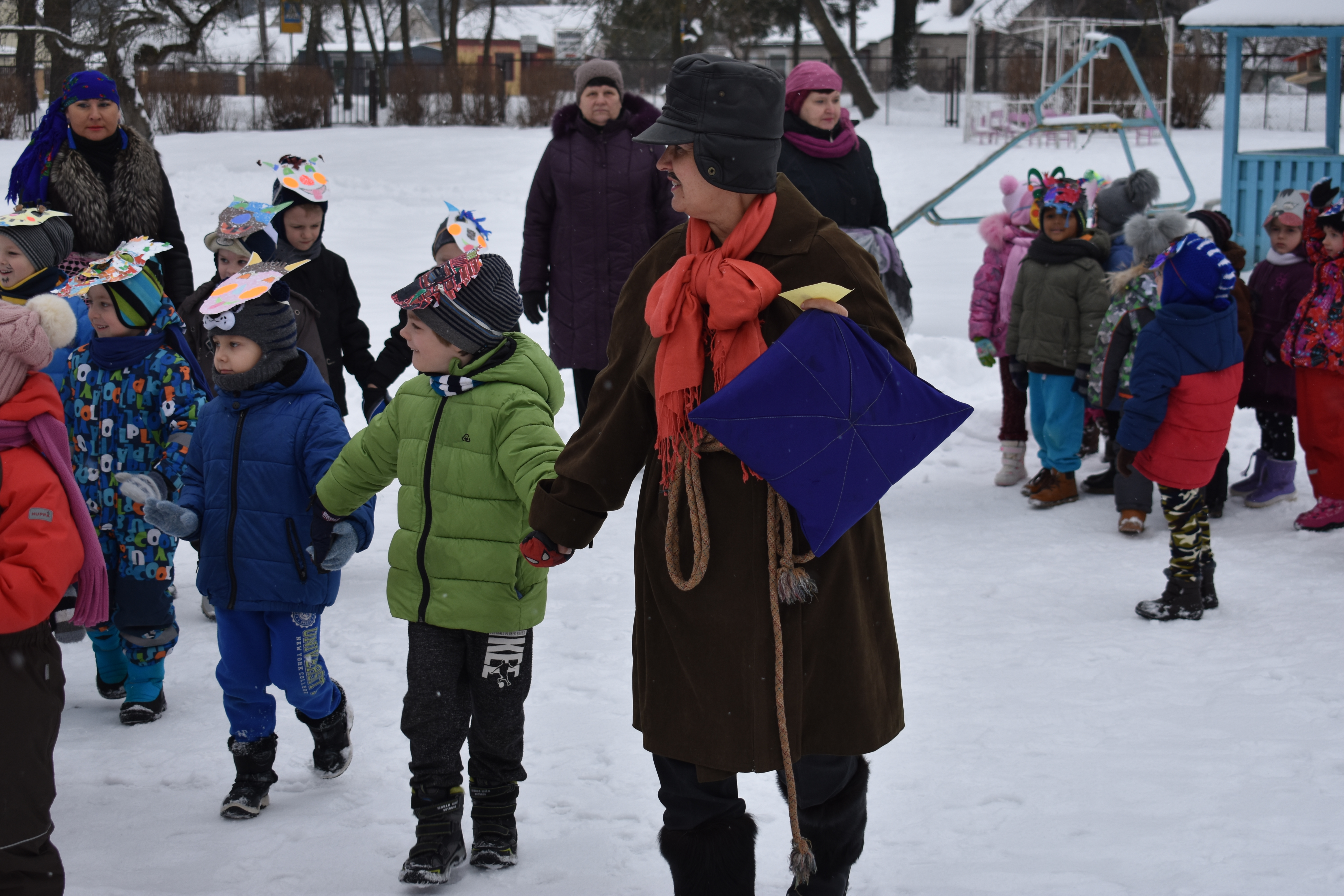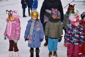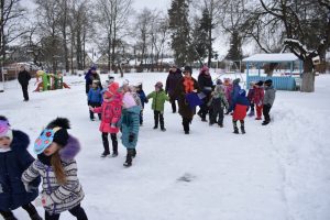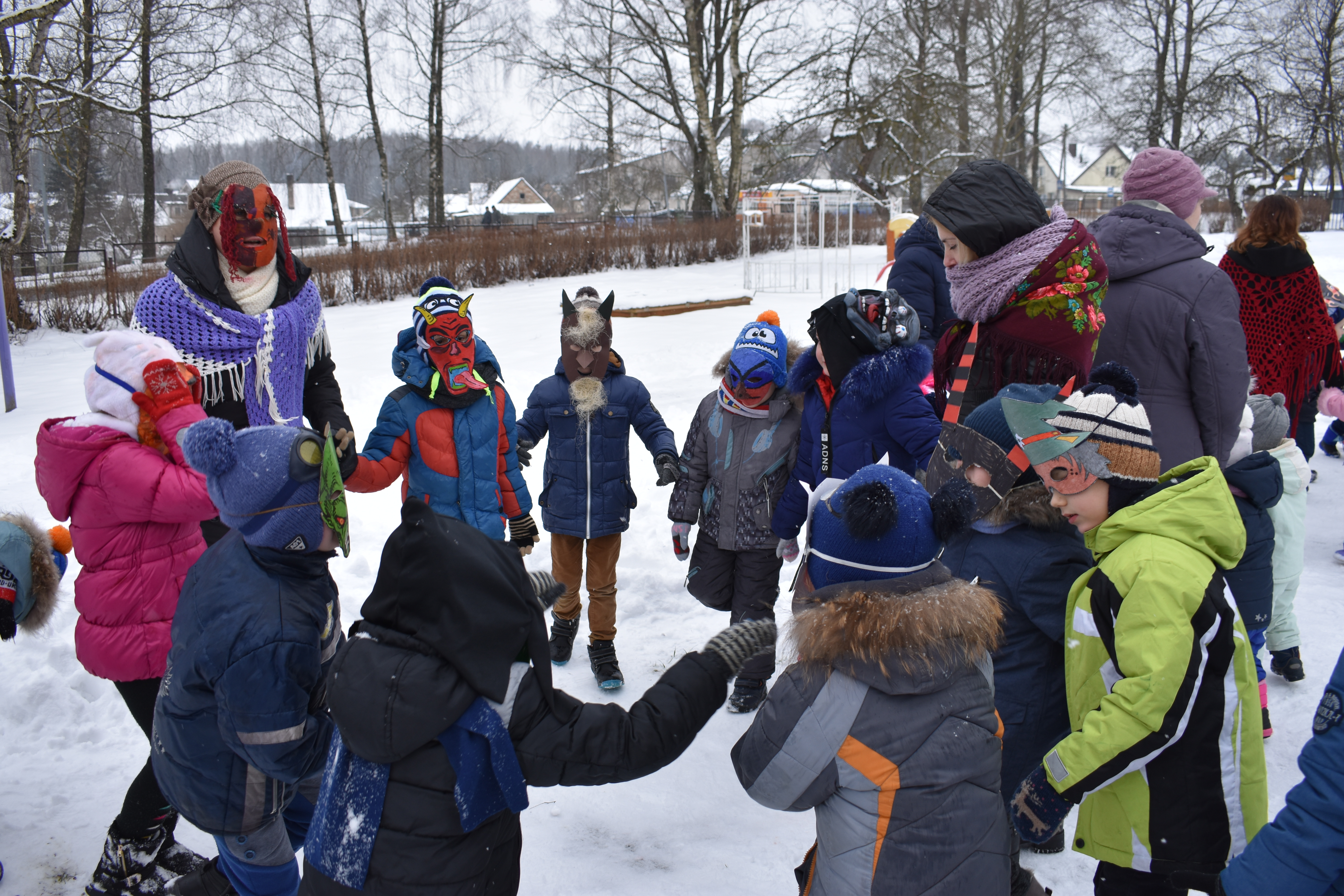 Vasario 13 d.  vaikai buvo supažindinami su kaukių įvairove, veikėjų simboliais: Lašininiu, Kanapiniu, More, Čigonais, Žydais, Giltine ir kt., o svarbiausia – Užgavėnių patiekalais – blynais. Turbūt pati džiugiausia diena, kai vaikai, persirengę įvairiais personažais, užsidėję pačių gamintas kaukes, išgužėjo į kiemą atsisveikinti su šaltu oru ir vyti žiemą iš kiemo. Lašininis ir Kanapinis ragino susirinkusiuosius linksmintis, šokti, dainuoti, pokštauti, žaisti įvairius žaidimus. Taip pat Lašininio ir Kanapinio paraginti vaikai sukėlė tikrą žiemos pūgą. Šventės metu neapsieita ir be  varžytuvių – virvės traukimo. Vaikų padedami Lašininis su Kanapiniu rungėsi tarpusavyje. Jie tarpusavyje rungėsi tol, kol Kanapinis tapo nugalėtoju. Šventės kulminacija – Morės deginimas, o kartu su ja ir negerų poelgių, pykčio, pavydo, patyčių, viso, kas bloga sudeginimas.