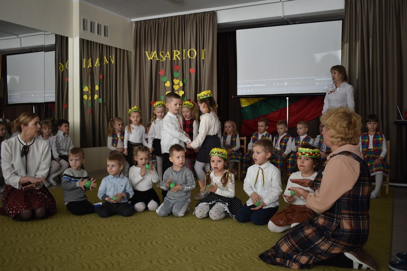 Tautiniais kostiumais pasipuošę, vasario 15 d. aktų salėje susirinko mūsų mažieji Lietuvos piliečiai, mokytojai, tėveliai, administracija. Ikimokyklinio ugdymo grupės „Saulutė“ ugdytiniai kartu su mokytojomis Olga Macinkevičiene, Jolanta Karaznevič ir Živile Girdžiūte, gražiais žodžiais apie Tėvynę pakvietė visus susirinkusius į didžiausią lietuvių tautos šventę.